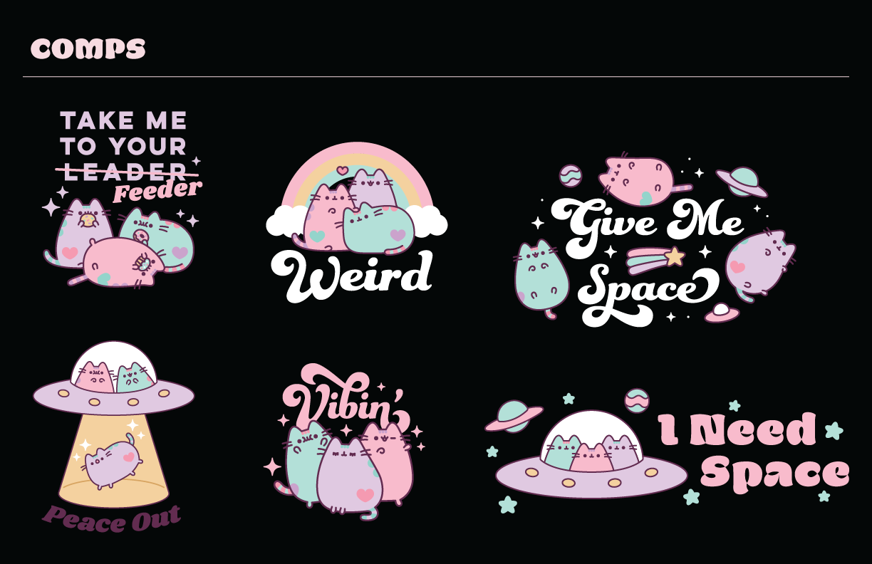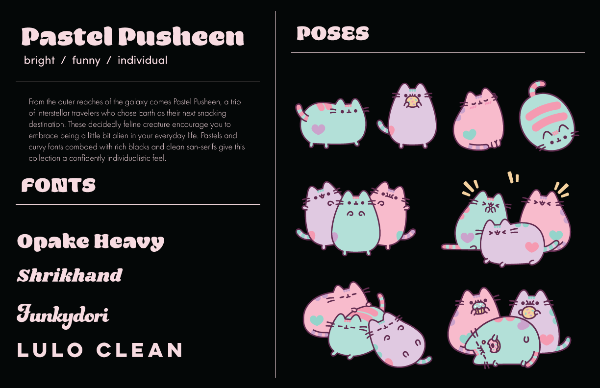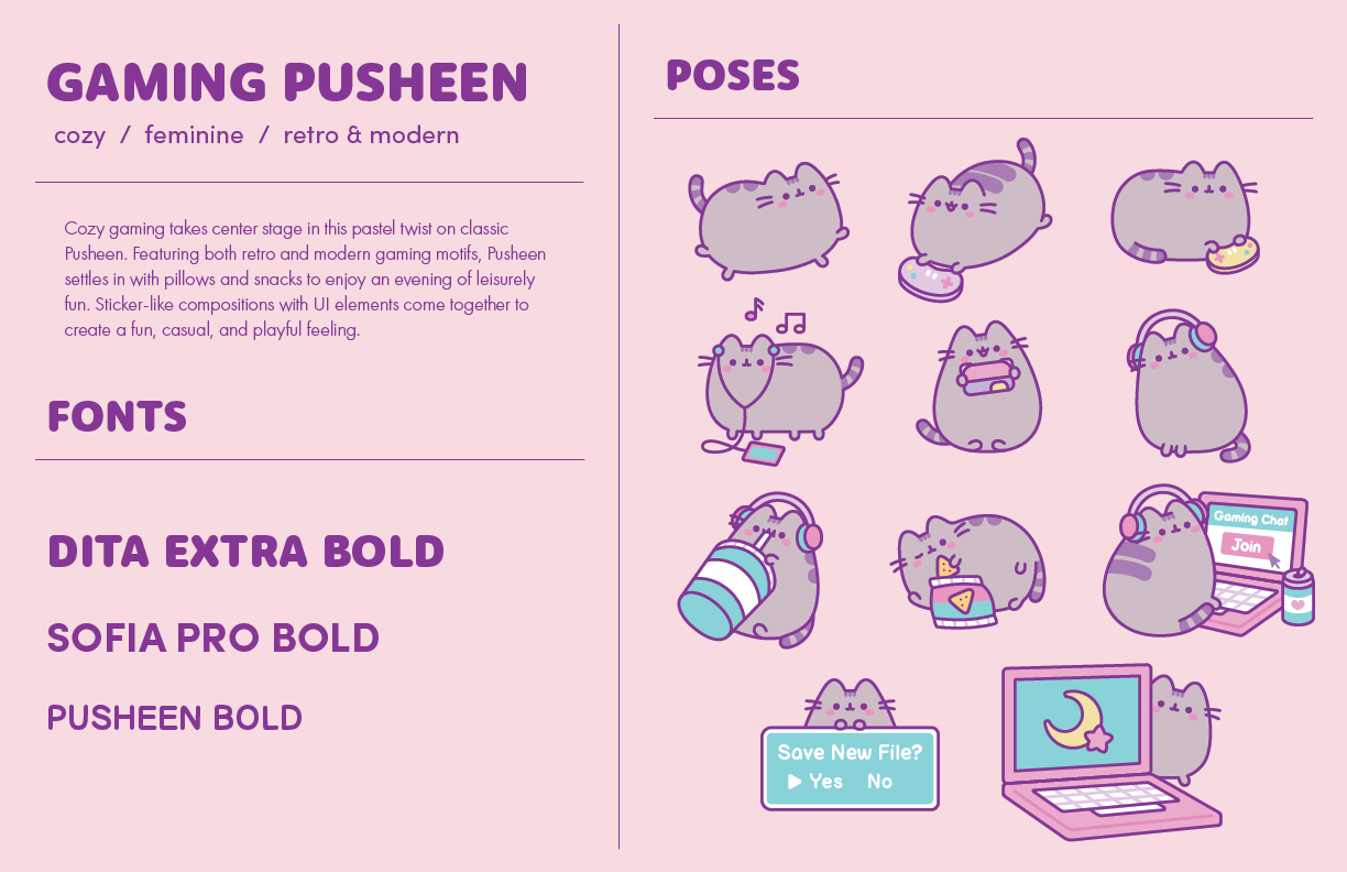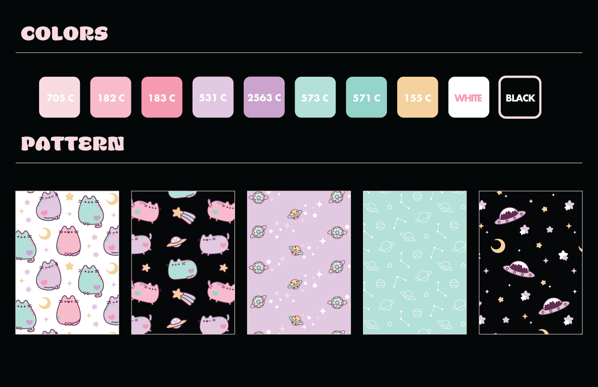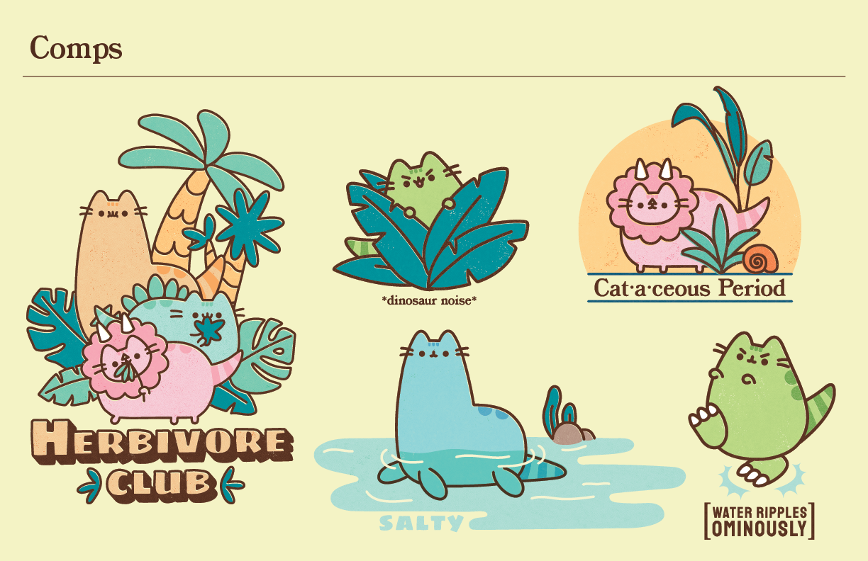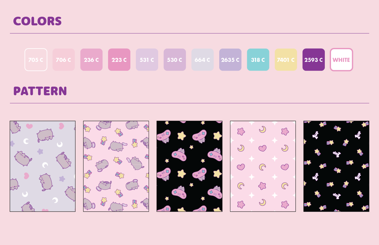 Featuring expansive Character Art, Comps, Patterns, Mock Ups, and more. Quarterly style guides supplied licensees with fresh, fun, and unique Pusheen artwork for seasonal campaigns.